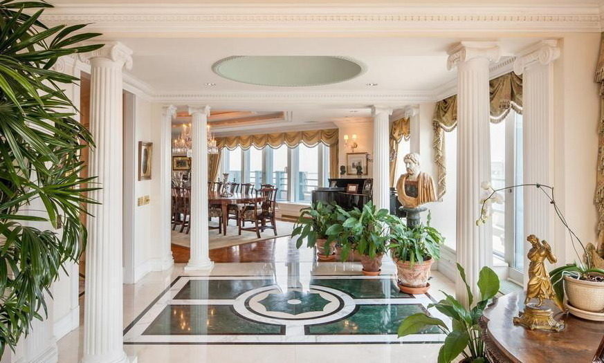 Cuenta con 16 habitaciones, 4 terrazas, 6 cuartos de baño, elevador privado, elevador interior y 5 escaleras. Esté departamento tiene en su interior la considerada sala de estar más cara del mundo por su decoración.