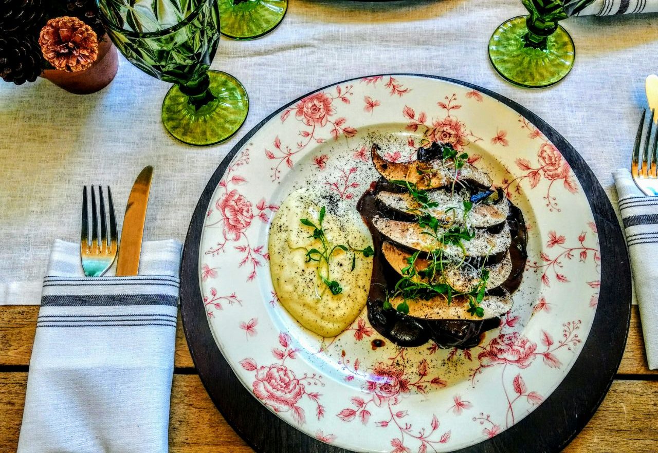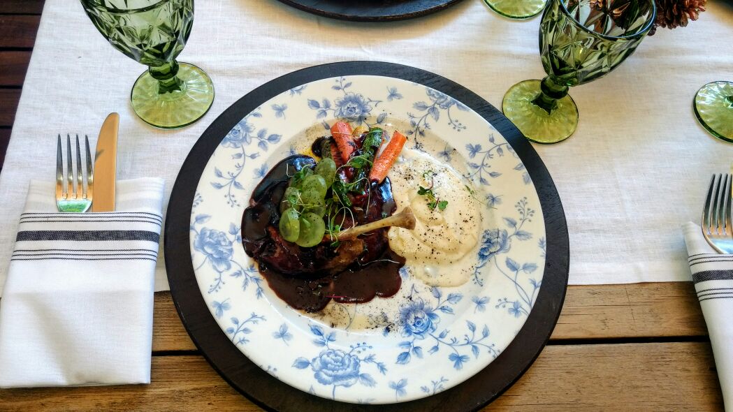 El chef me recomendó los platillos más emblemáticos de esta casa francesa y siguiendo sus sugerencias pedi el pato confitado bañado en salsa de uvas, acompañado con verduras babyy puré de coliflor (costo $255.00 m.n) y por supuesto no pude dejar de probar las Short Ribs con salsa de Portobello, nuez de macadamia y puré de papa (costo $295.00 m.n). Es una de las especialidades del chef.